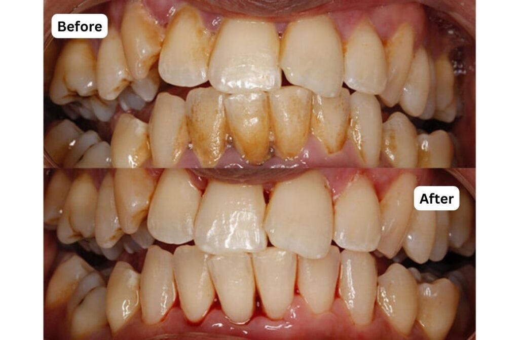 Setelah scaling, permukaan gigi terasa lebih halus dan bersih.